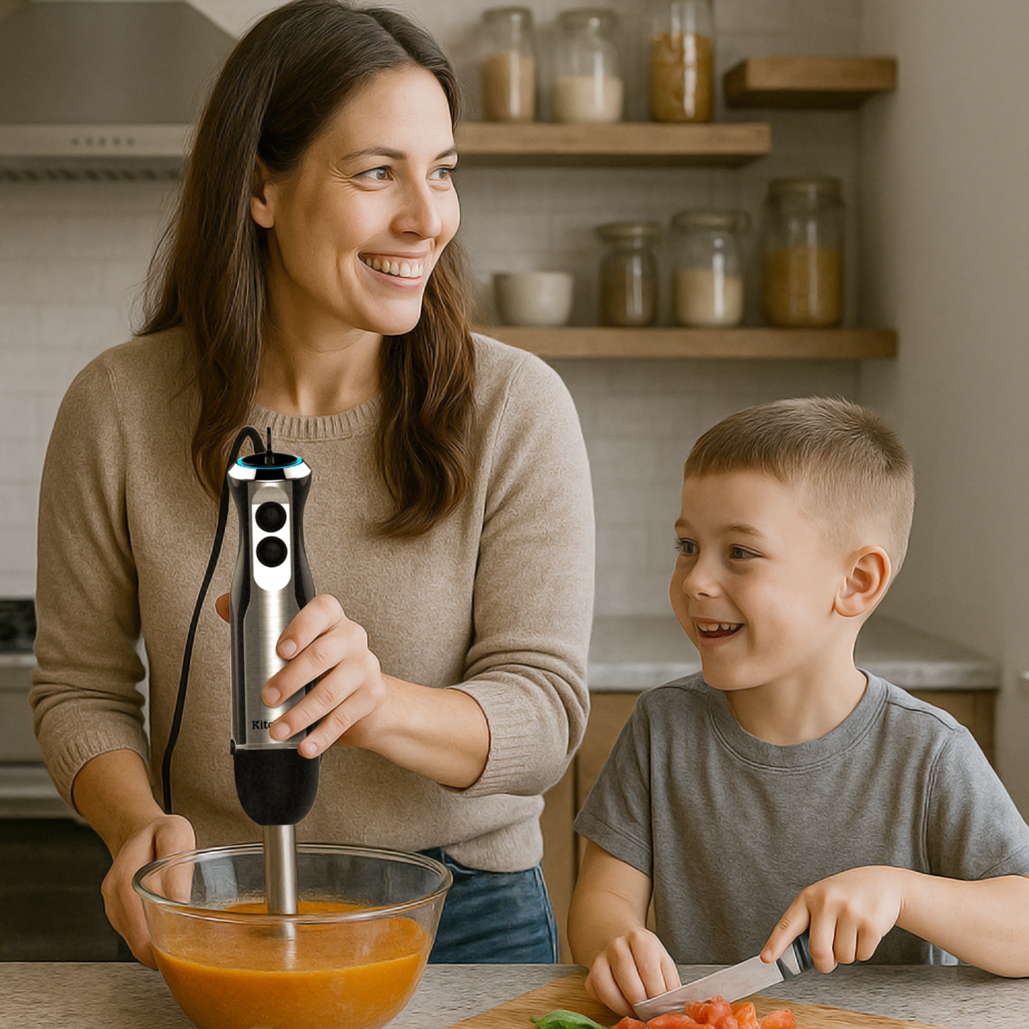 De Kitchello staafmixer is jouw alleskunner in de keuken. Of je nu een eiwitshake maakt na het sporten, verse babyhapjes bereidt of snel een saus wilt pureren voor het avondeten – je hoeft maar één apparaat te pakken. Dankzij de 8 snelheden en een handige turbofunctie krijg je elk recept precies zoals jij het wilt.